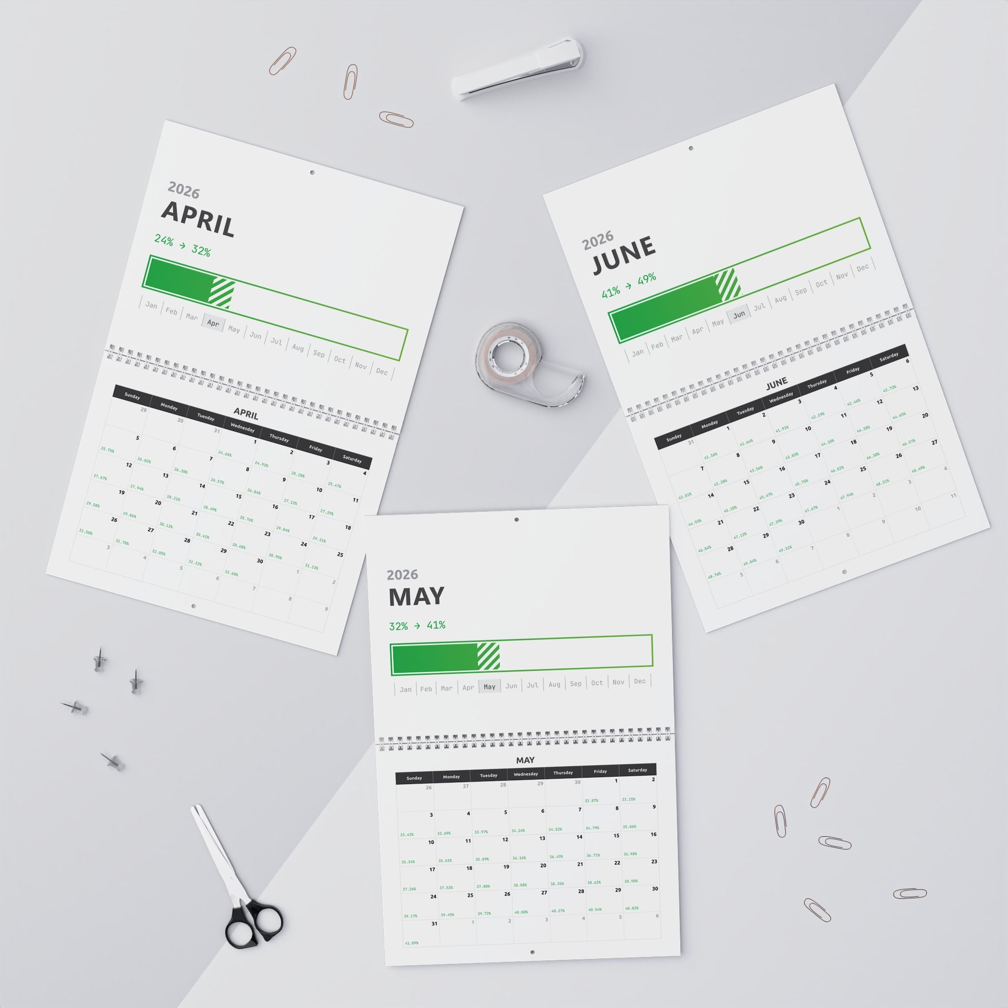 Progress Bar of the Year calendar transforms the abstract flow of time into a tangible visualization: one year, loading percent by percent.
